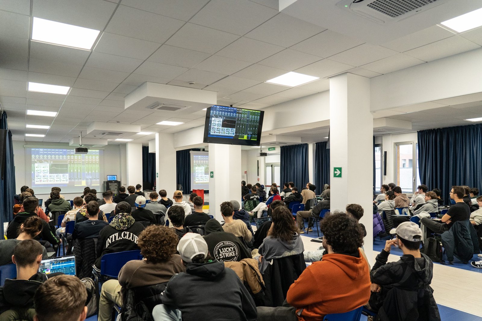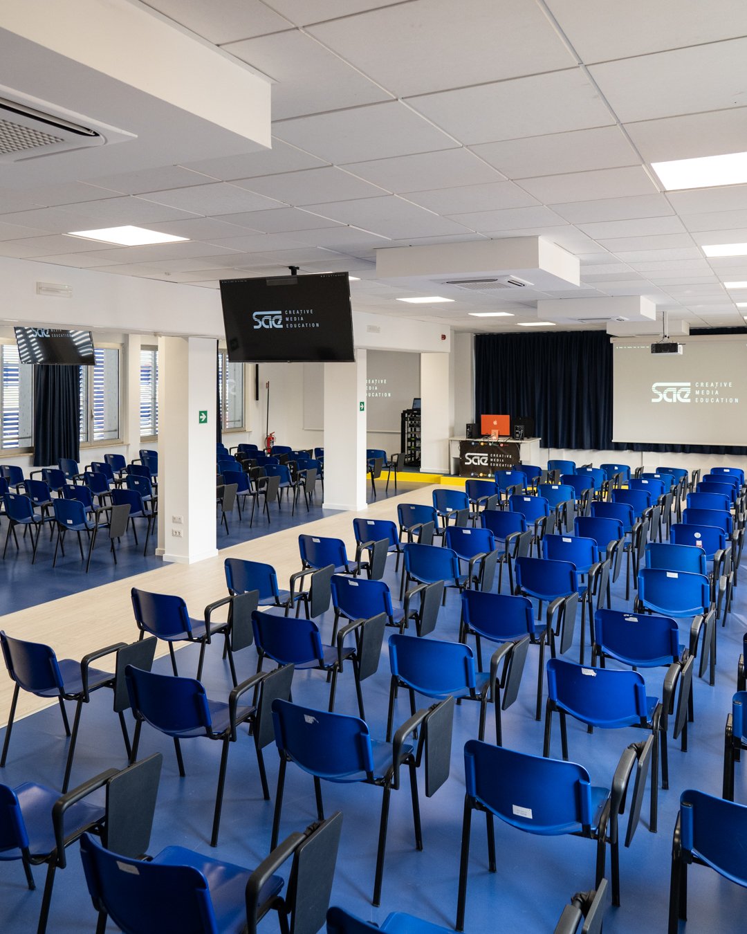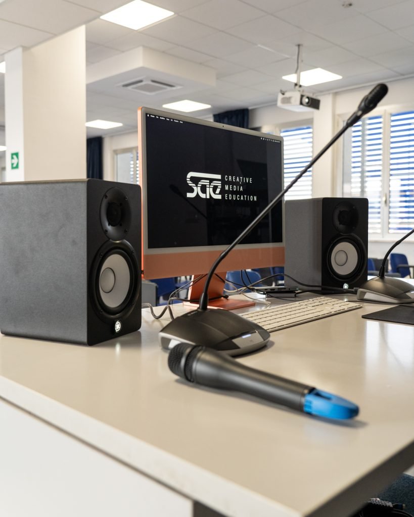 Con Federico Forni proviamo a capire i bisogni alla base degli interventi che hanno interessato le sedi di SAE, IAAD. e Accademia Italiana. «L’esigenza dell’intervento nasce dal SAE Institute, presente in 28 Paesi dei 6 continenti. SAE Institute Europe oggi è parte del gruppo AD Education e SAE Italia, con sede a Milano, ha un’offerta formativa nell’ambito della produzione audio, ma anche in quello cinetelevisivo, dell’animazione 2D/3D, del gaming e del music business. Avevamo la necessità di allestire un’aula magna da sfruttare in particolar modo per contenere due o tre classi teoriche. Anche se le lezioni sul suono si svolgono in aule appositamente strutturate, l’obiettivo era installare dotazioni audio di livello, che garantissero un rendimento in linea con il prestigio della scuola.