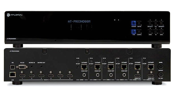 La nuova linea di matrici Atlona compatibili con lo standard HDBaseT-Lite, si compone di due modelli da 4×4 e 6×6 IN/OUT. Quest’ultimo formato, poco consueto nel nostro mercato si presta a numerose applicazioni, alle quali va stretto il modello 4×4. Per evitare di ripiegare su formati più grandi (in genere si va al raddoppio) Atlona introduce un formato ‘di mezzo’ utile per contenere i costi complessivi dell’installazione e razionalizzare il progetto. Un secondo elemento che rafforza il concetto di adeguare le risorse evitando gli sprechi è l’utilizzo dello standard HDbaseT-Lite, derivato dall’HDBaseT ma semplificato per contenere i costi. L’HDBaseT garantisce cablaggi lunghi 70 metri (anziché 100 metri della versione HDBaseT) e rinunciando alla possibilità di integrare il segnale Ethernet nel cavo di collegamento.