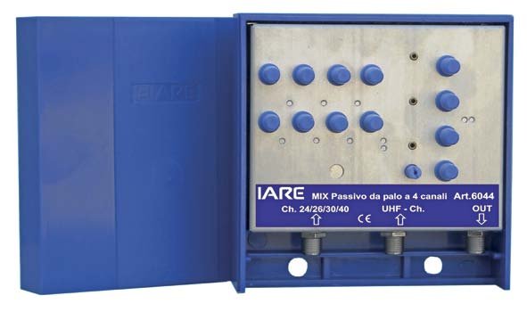 La serie 6000 di Iare è composta da 16 modelli: sono disponibili in versione attiva e passiva, da 1 a 4 ingressi, con vari livelli di amplificazione; vi sono modelli attivi che, in piccoli impianti, possono sostituire anche il centralino da palo. Oppure si possono utilizzare a monte di un centralino a larga banda. I miscelatori vengono tarati in fabbrica sui canali richiesti: le trappole filtrano i canali che vengono ricevuti dalla seconda antenna dell’impianto, evitando la nascita di eventuali interferenze durante la miscelazione. Il telaio metallico all’interno del contenitore plastico assicura la necessaria protezione dagli agenti atmosferici. Realizzati in SMD, sono alimentati a 12V. Nelle versioni attive i guadagni dell’ingresso UHF e dell’ingresso canali da miscelare sono regolabili.