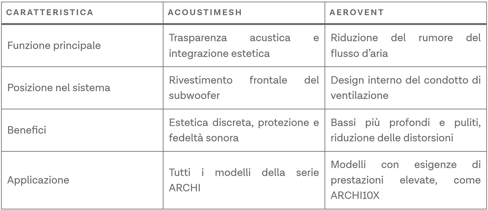 La serie ARCHI è dotata delle tecnologie AcoustiMesh e AeroVent, che permettono di avere toni pieni, puliti con estensioni delle basse frequenze fino a 26 Hz.