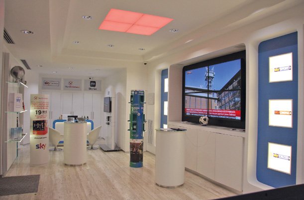 «Per noi è importante far sentire il cliente al centro del mondo Sky – prosegue il fondatore di BOERO. Ogni persona, nel momento in cui apre la porta d’ingresso si immerge in una realtà che sogna di poter replicare a casa propria. Nello specifico il negozio è corredato un maxi schermo di 75 pollici, collocato nell’area dedicata alla visione dei contenuti Sky e supportato dal servizio on demand. Tutt’intorno, il punto vendita è circondato da otto schermi che trasmettono immagini Sky, oltre a due display collocati alle spalle dei due banchi d’accoglienza».