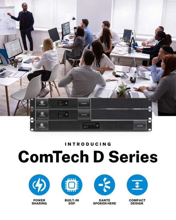 Crown ComTech D series. Amplificatori compatti con Power Sharing, DSP integrato e connettività Dante