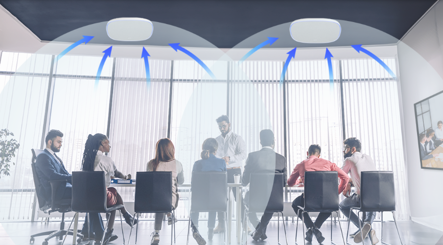 Lo speakerphone da soffitto è dotato di molte funzionalità innovative come l’eliminazione del rumore, il rilevamento double-talk e la de-reverberazione per garantire un audio cristallino in differenti scenari. Inoltre, riduce al minimo il rumore di fondo, rileva il parlato simultaneo e riduce l’eco per un audio perfetto.