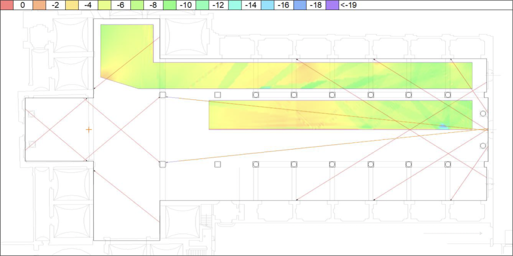 Per evitare la riverberanza, che causa grandi difficoltà all’intelligibilità del parlato, servono diffusori molto flessibili, che ci permettono di direzionare il suono dove serve.