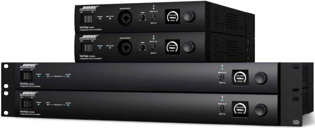 Gli amplificatori-mixer Veritas di Bose Professional sono adatti alla diffusione vocale e sonora multimediale (sorgenti analogiche e Bluetooth), sia di sottofondo che in primo piano, in ambienti commerciali (saloni, negozi, bar, piccoli ristoranti), didattici, hospitality, centri fitness, sale riunioni e spazi d’intrattenimento.