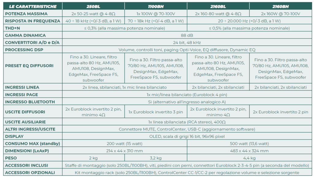 La gamma Veritas di Bose Professional comprende quattro amplificatori-mixer (combo) da 50 a 160 watt con uscite a bassa impedenza (4-8 ohm – modelli BL) oppure ad alta impedenza (70-100V – BH).