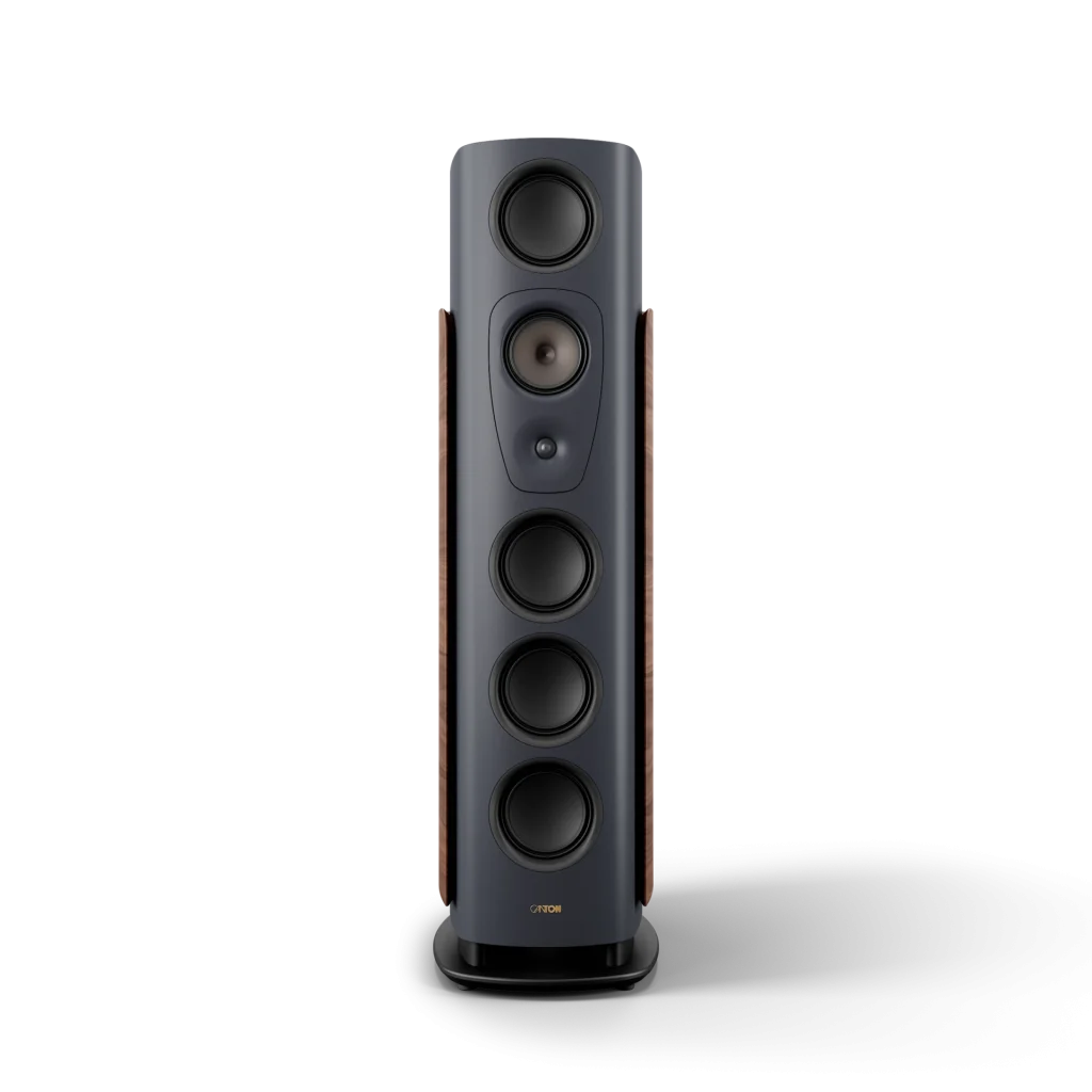 La nuova versione Alpha 1 della serie Reference ne rappresenta il modello di punta: un diffusore da pavimento a 3 vie con sistema bass reflex, che unisce eleganza e potenza. Il mobile, rifinito in laccatura opaca ‘Warm Grey’ o ‘Midnight Blue’, è impreziosito da pannelli laterali in vero noce curvato. I trasduttori midrange e tweeter, dotati di tecnologia Diamond Like Carbon (DLC), assicurano una risposta precisa e naturale. La nuova guida d’onda 3D integrata nella lente acustica migliora la dispersione alle alte frequenze, offrendo un suono uniforme e cristallino.