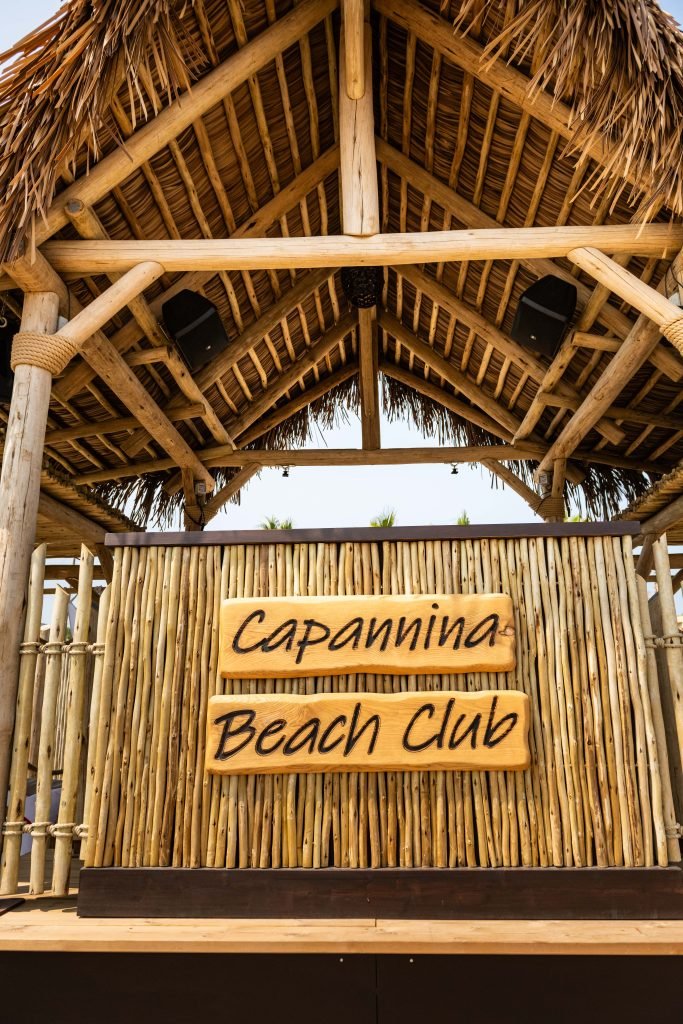 Nasce così Capannina Beach Club, con alla base un’idea ambiziosa: creare un ambiente esclusivo, capace di accogliere i clienti sia durante il giorno, come stabilimento balneare, sia la sera, per aperitivi, eventi privati e cene a tema. Oltre ai lettini e agli ombrelloni, la struttura è composta da un ristorante con bar dedicato e un chiringuito con DJ set attrezzato con tecnologia di alta qualità.