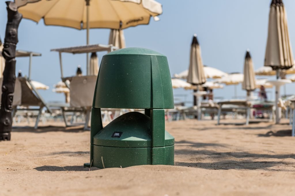 Come anticipato, sulla spiaggia sono stati installati anche i diffusori 88M, esteticamente gradevoli, con il caratteristico design a fungo. Anche questo modello è facilmente mimetizzabile nel contesto e, grazie al woofer da 200 mm, assicura una riproduce ad alta fedeltà.