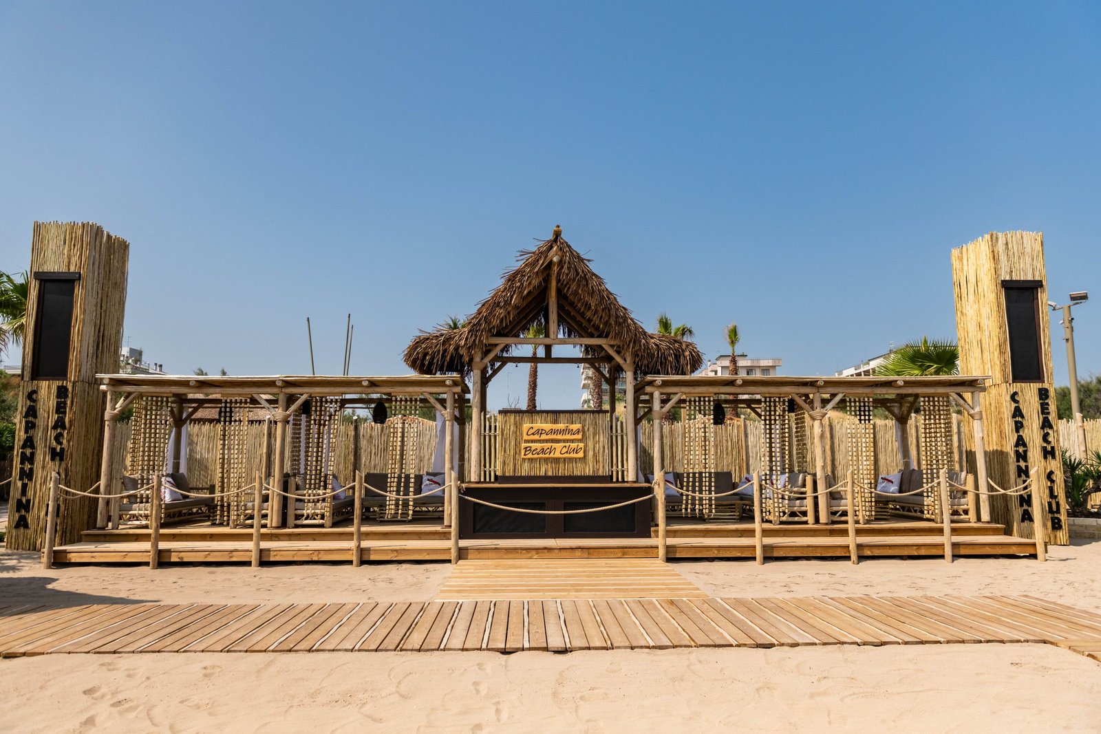 Nasce così Capannina Beach Club, con alla base un’idea ambiziosa: creare un ambiente esclusivo, capace di accogliere i clienti sia durante il giorno, come stabilimento balneare, sia la sera, per aperitivi, eventi privati e cene a tema. Oltre ai lettini e agli ombrelloni, la struttura è composta da un ristorante con bar dedicato e un chiringuito con DJ set attrezzato con tecnologia di alta qualità.