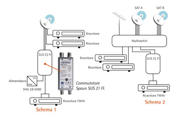 Il commutatore Spaun SUS 21 FI consente di ampliare un impianto condominiale, utilizzando un unico cavo coassiale per collegare un decoder PVR come il MySky HD. SUS 21 FI viene collegato direttamente all’uscita di un LNB Twin, Quad, Octo (Schema 1), oppure all’uscita di un…