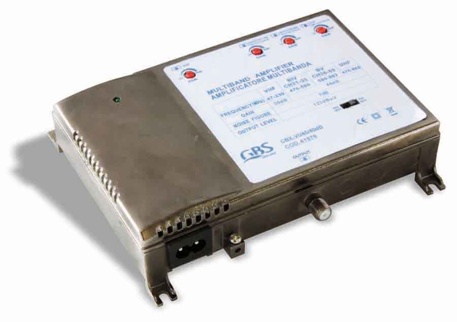 La nuova gamma di centralini a larga banda di GBS è dotata di un filtro, attivabile con uno switch, che impedisce ai segnali presenti sui canali dal 61 al 69 di essere distribuiti in un impianto di ricezione televisiva. La consistenza del contenitore, realizzato in pressofusione, offre un’elevata efficienza di schermatura; un aspetto, questo, sempre più importante in un contesto dove le interferenze elettromagnetiche sono in fisiologico aumento. La figura di rumore, pari a 6 dB, è molto contenuta. Il contenitore è dotato di pratici attacchi che rendono il fissaggio a parete semplice e rapido.