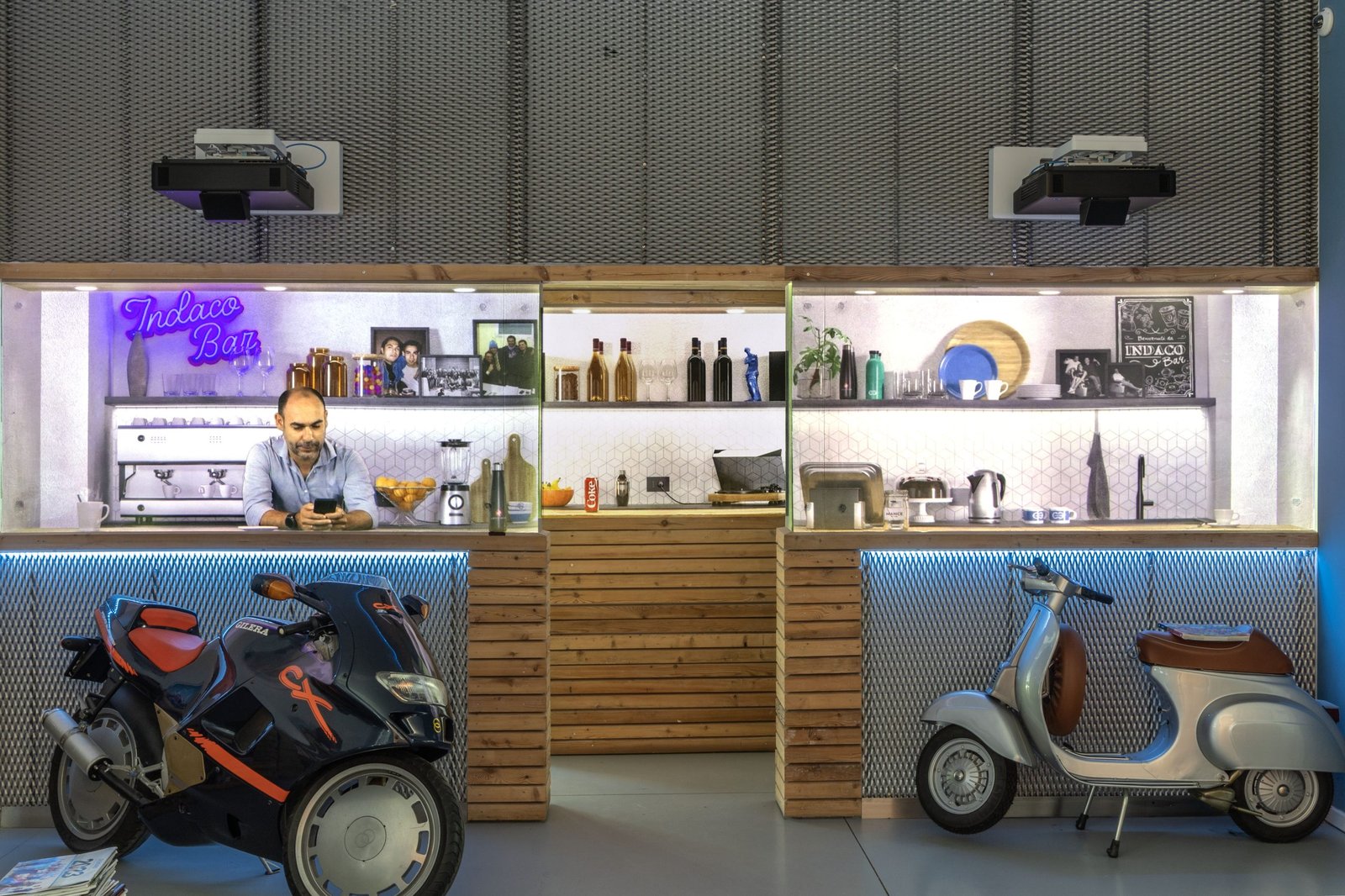 Un’altra zona interessata dalla videoproiezione sono, sempre al piano terra, gli uffici di Indaco Lab, il team di digital marketing che affianca Copying nella realizzazione dei contenuti.