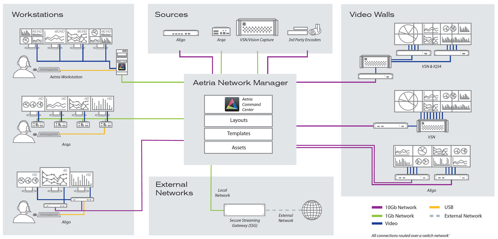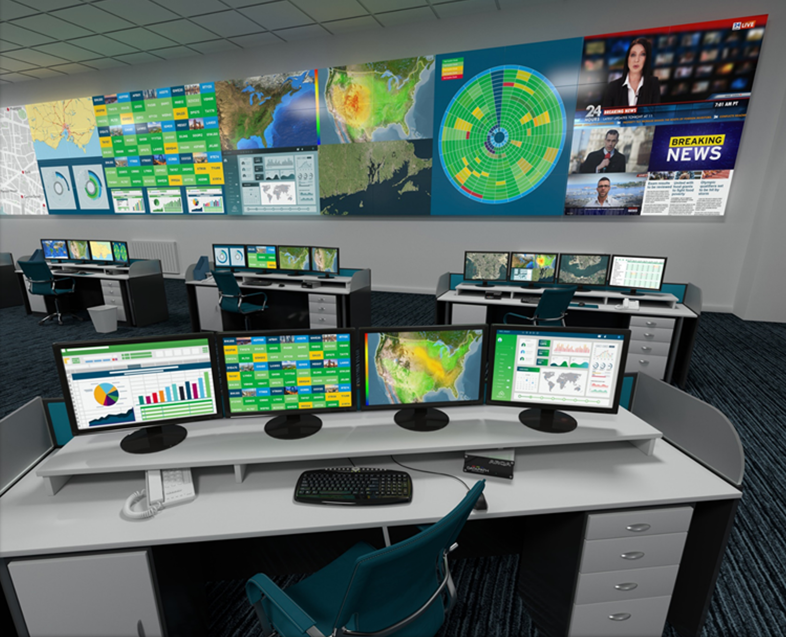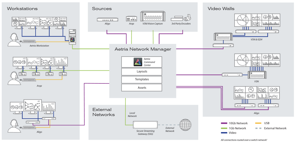 Aetria è una piattaforma composta da elementi hardware e software, sviluppata da Datapath per gestire control room ‘mission critical’, contesti dove viene richiesta una flessibilità totale nella gestione delle sorgenti, nella visualizzazione dei contenuti e nelle postazioni operatore.