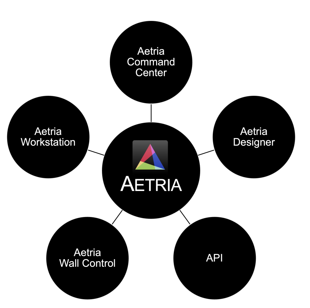 – Aetria WallControl. Funziona su un controller Datapath VSN per connettere Aetria a un videowall, consentendo una perfetta integrazione dei videowall nell’ecosistema Aetria.