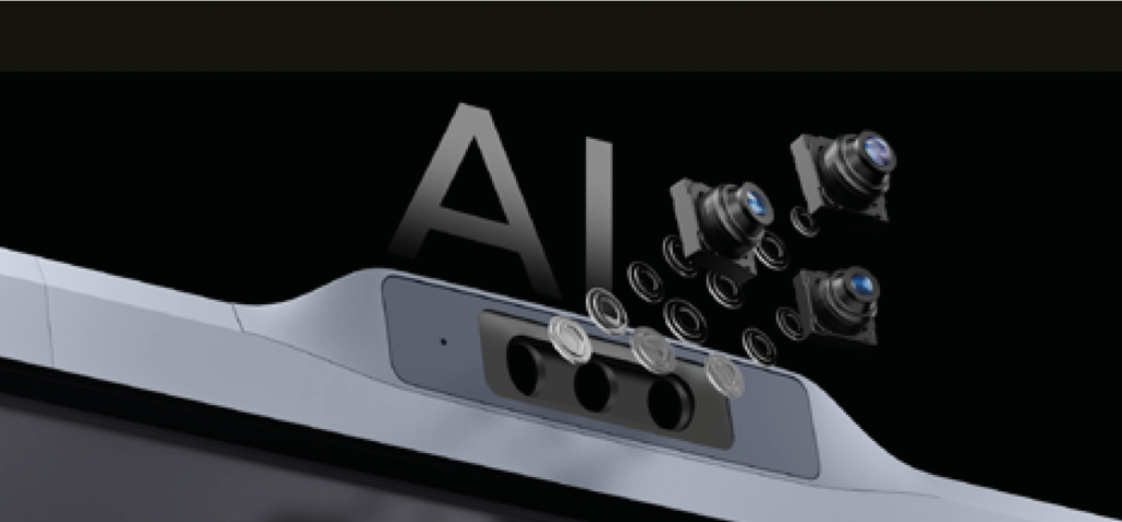 – Tre camere da 50 MP con algoritmi avanzati di AI. Campo visivo di 99° (diagonale), 86° (H), 69° (V);