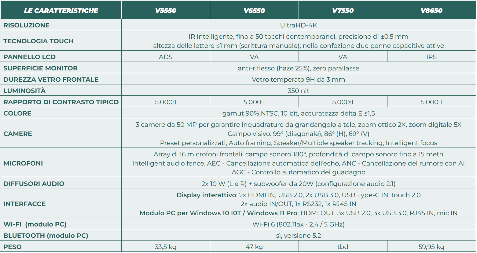 La nuova serie XBoard V7 è disponibile in quattro diversi formati: 55, 65, 75 e 86 pollici. Ecco i principali punti di forza: