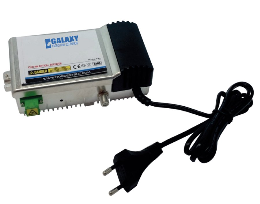 Il nuovo catalogo Galaxy dedica una sezione specifica ai prodotti per la distribuzione del segnale in fibra. Completa la gamma dei componenti attivi: LNB, trasmettitore, ricevitore e la presa con convertitore integrato.
