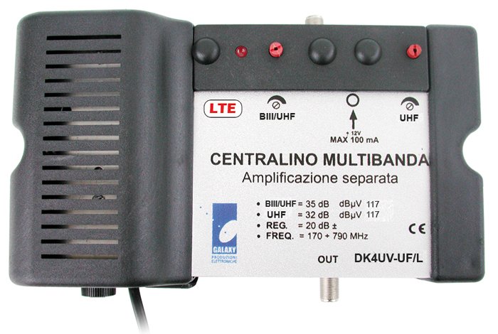 Rinnovata la gamma di centralini, ora tutti con filtro LTE integrato. I modelli DK-LTE sono destinati ad impianti di medie dimensioni e offrono un guadagno massimo di 35 dB. Tutti i centralini sono autoalimentati.