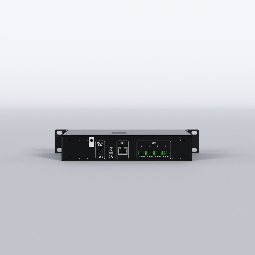 Il nuovo BOB-04 è una break-out box 4 OUT, che consente di ricevere e convertire in analogico quattro canali Dante/AES67. Compatibile con alimentazione PoE o 24VDC tramite alimentatore esterno opzionale, garantisce un’installazione semplice, flessibile e adatta a diversi contesti tecnici.