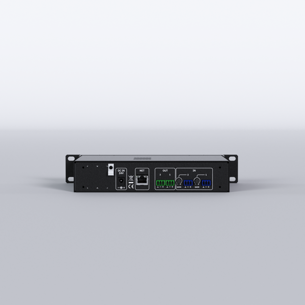 BOB-22 è una break-out box 2 IN / 2 OUT compatibile con alimentazione PoE o 24VDC. Progettata per gestire segnali audio bilanciati in ambienti compatti, consente di integrare facilmente ingressi e uscite analogiche all’interno di una rete Dante/AES67, anche in spazi ridotti come postazioni desktop, tavoli riunioni o rack tecnici.