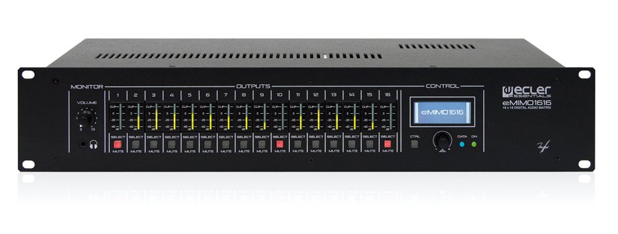 La matrice eMIMO1616 è un prodotto Ecler che appartiene alla linea Essential, posizionato nella fascia entry level. Questa matrice si aggiunge all’offerta Ecler dedicata alle matrici audio digitali, che comprende anche i prodotti MIMO 88SG, MIMO88 e MIMO1212SG. La eMIMO1616 è una matrice audio molto diversa dalle altre matrici Ecler. Fra le importanti differenze, oltre al posizionamento di mercato, ricordiamo anche la presenza del webserver integrato (quindi la gestione semplificata che non richiede l’aggiunta di un PC esterno) e il fatto che questa eMIMO1616 non può essere utilizzata come mixer: ad esempio, in un impianto ‘conference’, perché non è possibile sommare i segnali provenienti da più postazioni microfoniche e di inviarli ad un’unica uscita. Infine, la compatibilità con i pannelli di controllo a muro serie WPm e WPa.