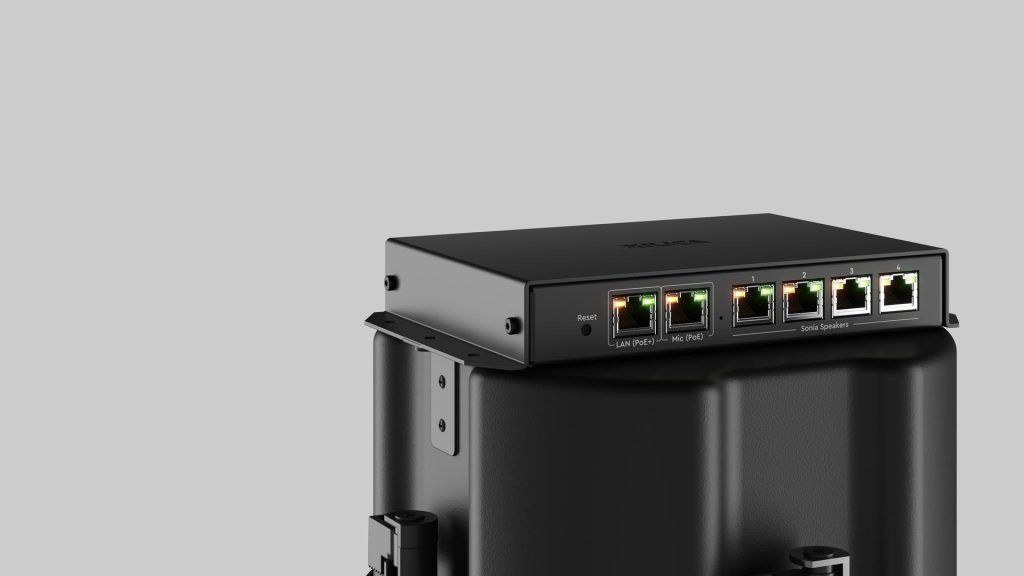 I diffusori distribuiti, come la serie Sonia, consentono di posizionare i diffusori in modo uniforme nello spazio per coprire un’area più piccola con ciascun dispositivo, abbassando il volume complessivo, rendendo il suono più definito eliminando echi e riverberi. In questo modo, chi si trova davanti e in fondo alla stanza può sentire allo stesso modo, senza rinunciare alla qualità dell’ audio.