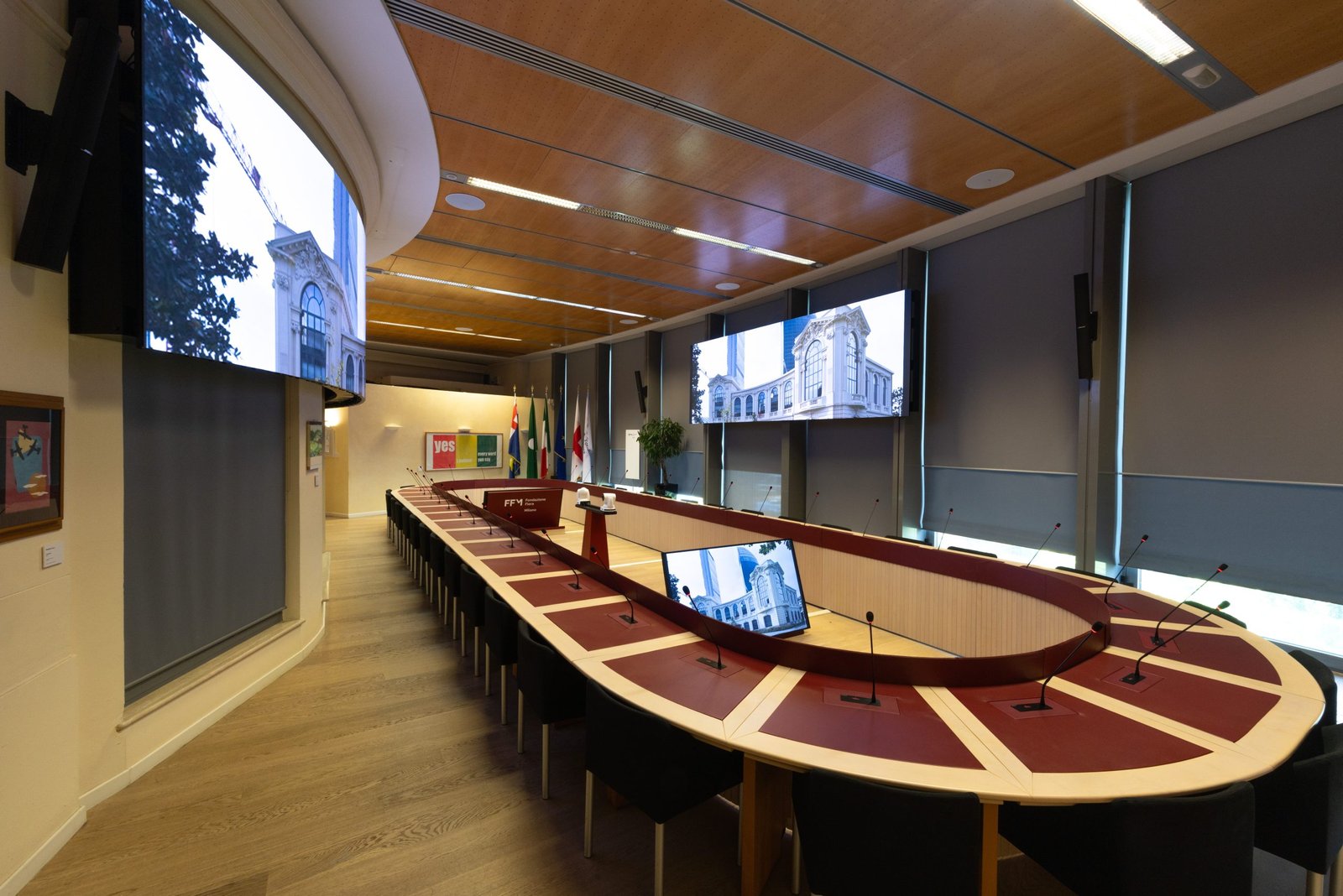 La sala del Consiglio della Palazzina degli Orafi, sede di Fondazione Fiera Milano, si rinnova. Due ampi ledwall, un impianto audio progettato con precisione, telecamere con regia automatizzata e sistemi UCC operano in sinergia per garantire riunioni ibride inclusive e un’esperienza d’uso fluida e coinvolgente, capace di rendere ‘intelligibili le emozioni’. Tecnologie: Bose Professional, Lumens, Barco e Samsung. System integrator: STIM Tech Group.