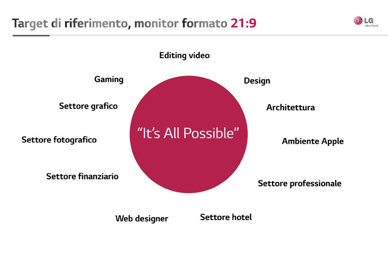 “Noi crediamo che i target di riferimento per questo formato innovativo siano numerosi e importanti – ha commentato Polticchia durante il suo intervento. Per questo abbiamo coniato il claim per una comunicazione globale It’s All Possible; pensiamo agli utenti di Gaming, Fotografia, Grafica, Finanza, Web, Design, Editing video, e così via. I vantaggi di uno schermo più largo non favoriscono soltanto quelle categorie professionali oggi costrette a lavorare con due monitor affiancati”.