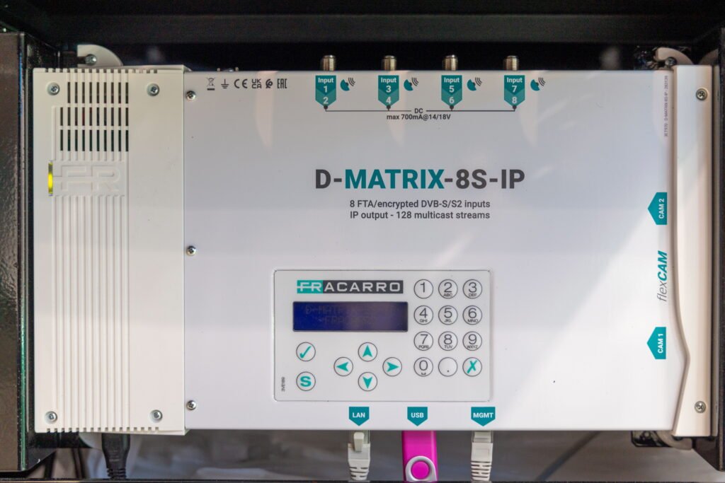 D-Matrix-8S-IP è una centralina di trasmodulazione compatta per strutture medio-piccole.