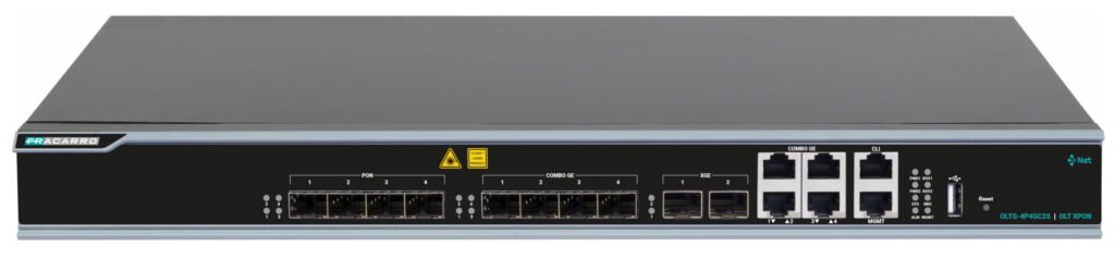 OLTG-4P4GC2S è un terminale OLT destinato a strutture medio-grandi e grandi (da 50 a migliaia di stanze). Dispone di quattro porte PON, quattro porte COMBO (10/100/1000M auto-negoziabili o 4× SFP 1GE) e due porte SFP+ 10GE.