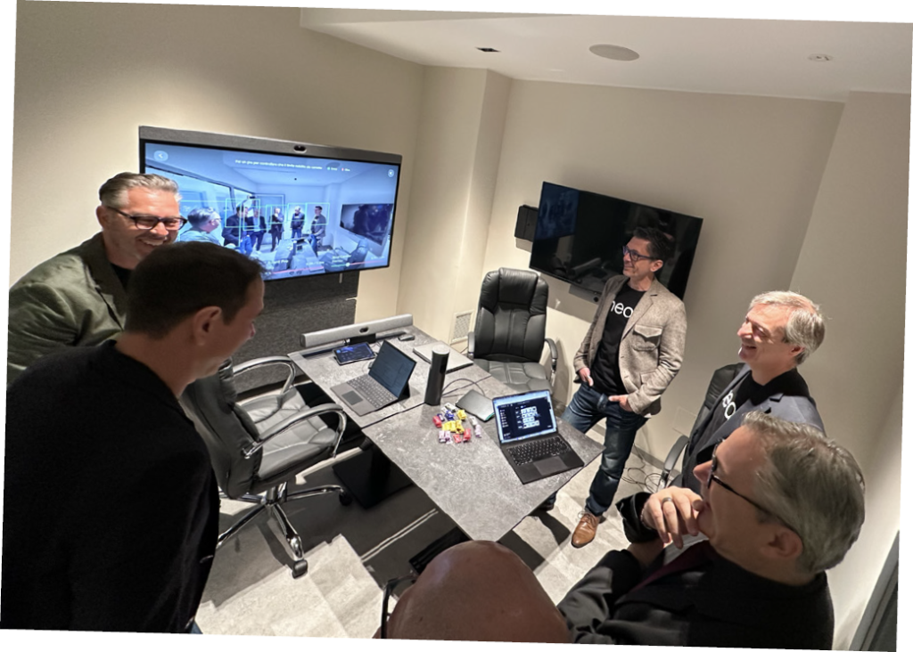 Iniziamo da Neat, un brand norvegese con sede a Oslo, noto per l’attenzione al design e all’ergonomia delle sue soluzioni. In una saletta allestita per l’occasione, Neat ha presentato le sue soluzioni di collaboration di alta qualità, composte dal monitor multitouch neat.board, dalla barra AV neat.bar e dalla camera a 360° neat.center, tutte dotate di funzioni AI e certificate per Zoom e Microsoft Teams. La saletta era microfonata con il sistema Yamaha Adecia, mentre la soluzione di collaboration era targata Barco ClickShare.