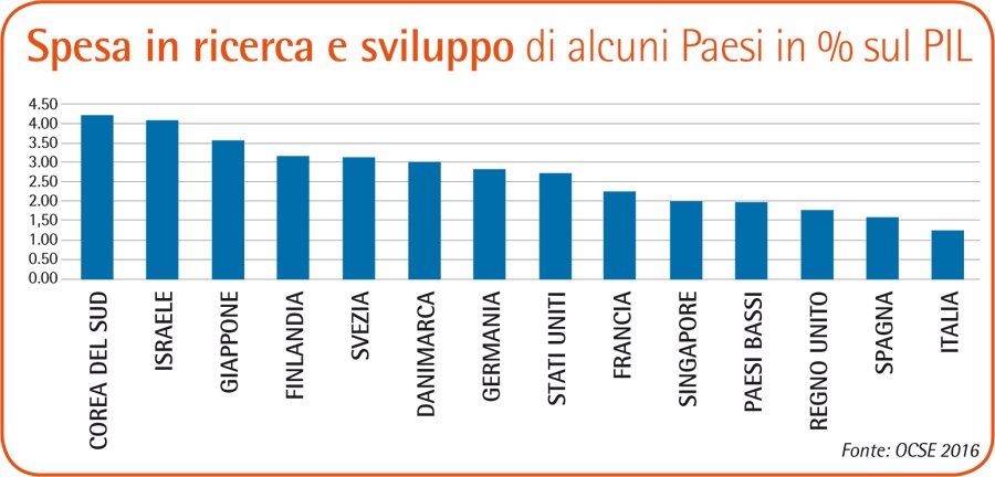 Va tuttavia considerato che, come sappiamo, il tessuto imprenditoriale italiano è caratterizzato da micro e piccole imprese (le imprese familiari sono cinque milioni), poco propensi ad investire in ricerca e sviluppo anche perché molto spesso i ricavi non lo permettono.