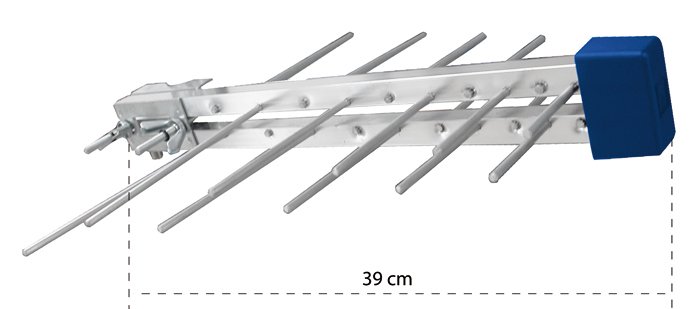Un’antenna logaritmica con guadagno massimo di 24 dB, grazie al preamplificatore integrato nell’asta portante. Robusta e compatta, è caratterizzata da 10 elementi per una lunghezza d soli 39 cm.