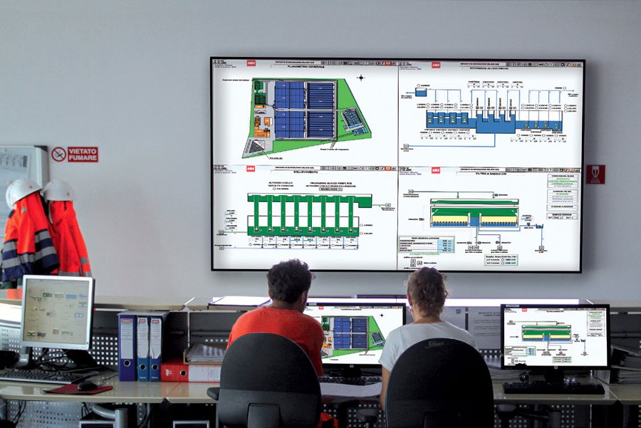 In un sistema Scada, come quello installato al depuratore MM di San Rocco, la Control Room rappresenta il centro di supervisione e di controllo dell’intero sistema, per condividere e visualizzare informazioni di più postazioni, agevolando il lavoro di squadra. Gli altri tasselli di questa fondamentale struttura sono i sensori, i microcontroller, la rete di PC che raccoglie i dati e li convoglia in un server e le postazioni, a ciascuna delle quali viene assegnata una specifica funzione. Scada significa Supervisory Control And Data Acquisition, ossia controllo di supervisione e acquisizione dati.