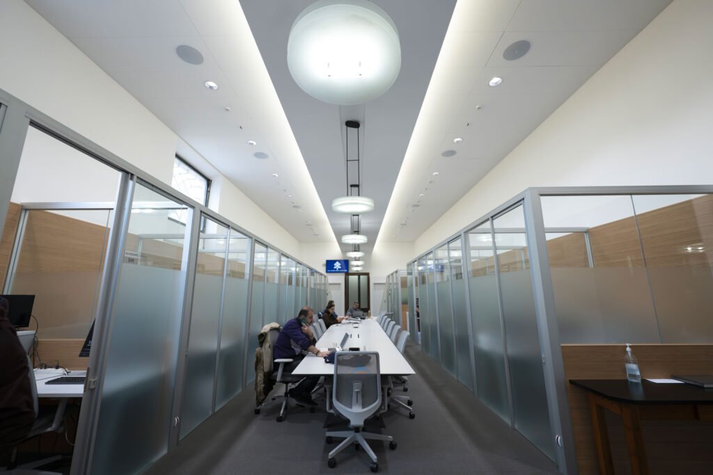 Diamo ora la parola a Claudio Contigliani, MD e partner di Next Domus, per scoprire come è stata affrontata e vinta una sfida così prestigiosa. «Prestigiosa – esordisce Contigliani – è proprio la parola giusta: la sala stampa è, come ci disse Francesco Masci fin dall’inizio, il biglietto da visita con il quale la Santa Sede si è presentata al Giubileo 2025, per questo tutto doveva essere pronto entro i tempi stabiliti e nulla poteva essere lasciato al caso.