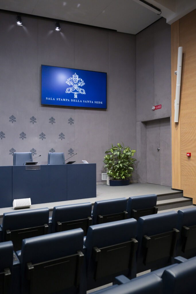 In occasione del Giubileo 2025 la Santa Sede ha rinnovato la propria sala stampa con un impianto AV esteticamente integrato all’ambiente storico vincolato, che offre un ascolto chiaro e uniforme in sala e garantisce la trasmissione dei contenuti in qualità broadcast verso radio, televisioni e canali digitali di tutto il mondo. Progetto e integrazione Next Domus. Tecnologia Bose Professional.