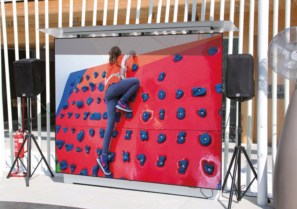 Questo padiglione di Ferrero è, insieme, un monito e un buon esempio da coltivare con profonda sensibilità. Muoversi, ispirarsi e giocare: quando non esistevano videogame e social network erano le esperienze fisiche e avventurose a tenere banco. Ci si divertiva parecchio, in modo sano e in gruppo: si respirava quotidianamente l’importanza del rapporto umano: condividere o disapprovare non era determinante. Nel padiglione Kinder+Sport sorprende positivamente la presenza di giochi ludo-motorizzati unici, progettati da una Commissione Scientifica per lo sviluppo delle abilità sociali. Attività che i bambini e i ragazzi di oggi praticano sempre meno, prevalgono i contesti virtuali che rischiano di isolare, con tutte le negative conseguenze sociali che ciò comporta. In quest’area la tecnologia, installata da TecnoVISION (www. tecnovision.com) è presente ma sottotraccia ed è poco invasiva, funzionale alla promozione dei valori che contano. Sono presenti pochi monitor, dotati di supporti a muro (Vogel’s), di un paio di Ledwall e l’indispensabile sistema professionale audio (Sennheiser LSP 500 PRO) con matrici digitali (Ecler MIM088), a disposizione degli animatori per coinvolgere, guidare, battere il tempo e organizzare insieme un gioco. Esperienze di movimento: una Responsabilità Sociale che Ferrero si è assunta per facilitare l’accesso al mondo dello sport e all’attività fisica come una divertente pratica quotidiana. Sarebbe più facile, ma altrettanto miope, attirare l’attenzione dei bambini spettacolarizzando la tecnologia. Guardare al futuro e per il pianeta significa anche avere capacità di buoni esempi.