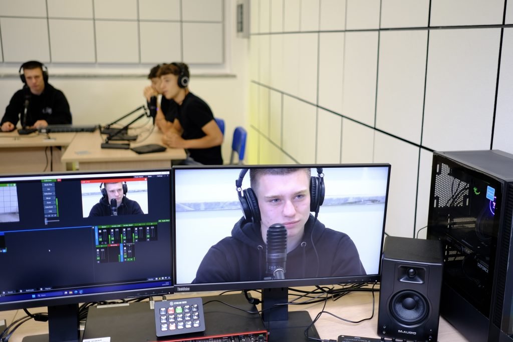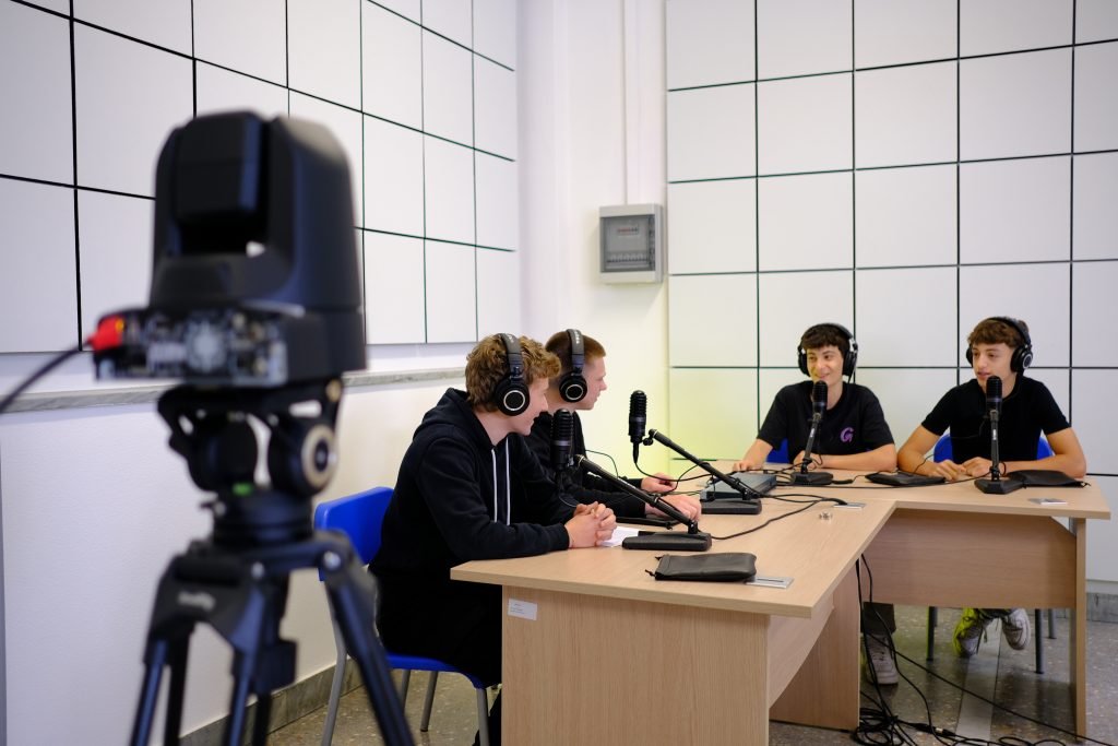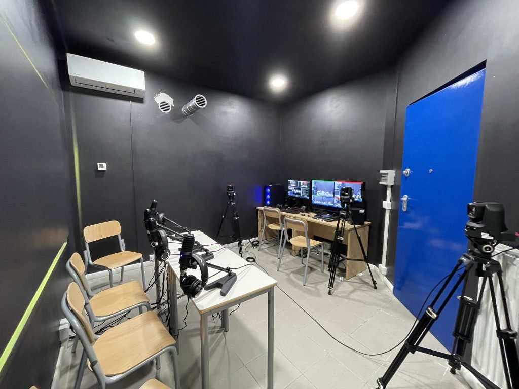 A Dallavalle chiediamo di parlarci delle dotazioni che CAST propone alle scuole come gli istituti Giordano Bruno e Vittorio Veneto. «Un ambiente che voglia fare TV, podcast e radio è formato da tre spazi: lo studio, insonorizzato e separato; la regia, la sala di comando in cui tramite la rete Internet vengono raccolti i flussi; l’unità mobile, una regia che può essere spostata a seconda delle esigenze. Partendo da questa base, abbiamo creato diversi pacchetti: il Pacchetto Radio, con studio e regia, ma senza videocamere; il Pacchetto Podcast, che aggiunge le videocamere; il Pacchetto TV, con studio, regia e unità mobile dotata di videocamere.»