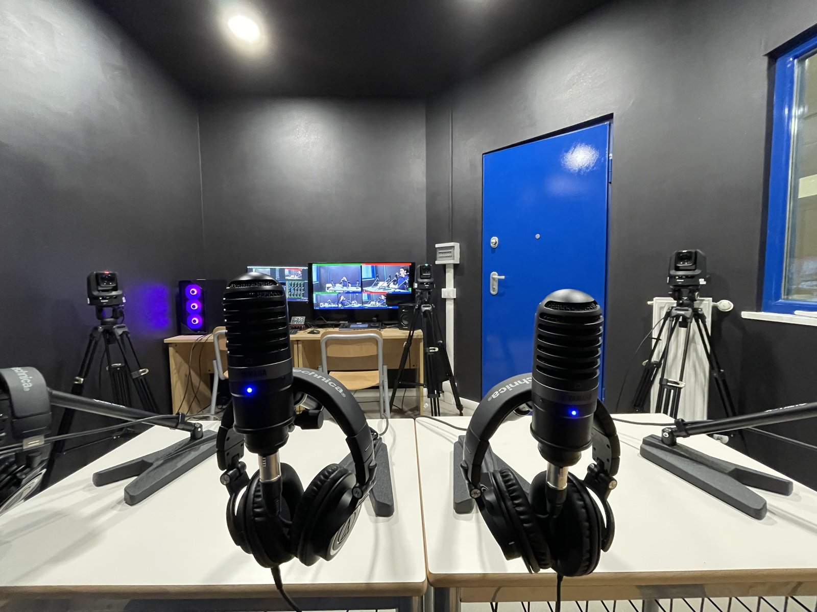 C’è poi lo studio, che in dotazione ha 4 microfoni, 4 cuffie, 4 aste e un numero variabile di camere PTZ Canon CR-N300.