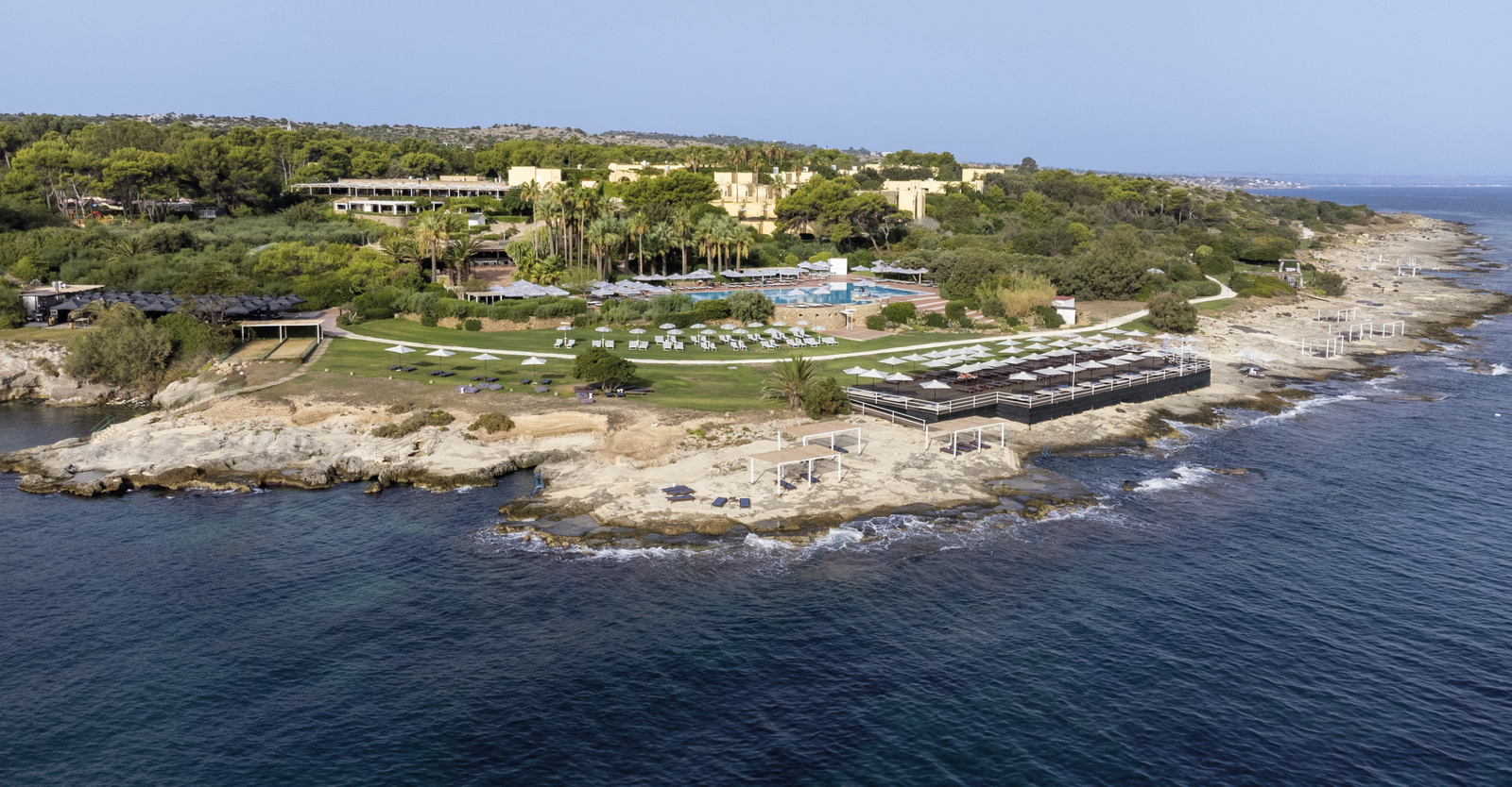 «Il nostro resort è classificato come Biophilic Design Hotel, essendo totalmente integrato nella vegetazione, tra alberi secolari e numerosissime varietà di piante, senza dimenticare la fauna marina. Ci troviamo al crocevia tra le più grandi città di importanza artistica della Sicilia: Catania, Siracusa, Taormina, Marzamemi, Noto. Abbiamo una discesa che degrada su un mare bellissimo, con accessi facilitati a piscine naturali. Quando è stata pensata, oltre cinquant’anni fa, questa struttura è stata incastonata come un diamante sul promontorio, in modo da essere esposta sia all’alba sia al tramonto, con vista sull’Etna. Il canale che costeggia il resort ricorda un fiordo norvegese e abbiamo delle grotte di origine neolitica, qualcosa di unico dal punto di vista paesaggistico. L’estensione territoriale è di 40 ettari, 22 dei quali sono accessibili agli ospiti. Insomma, un vero tesoro da preservare».