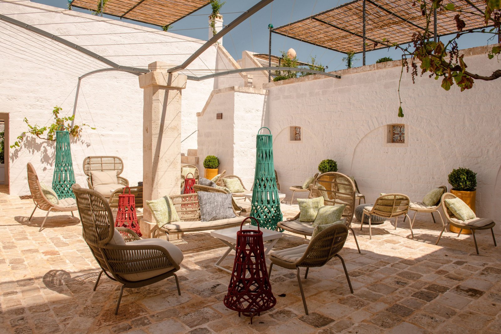 Tutta l’attenzione riservata al rispetto del paesaggio è comprensibile per una struttura come questa, a partire dalla sua posizione: la Masseria affaccia infatti sulla costa, con una vista molto ampia sul mare, praticamente a 180°. Rovinarla con costruzioni di aspetto troppo moderno avrebbe ridotto la sensazione di immergersi nella natura, di provare «un’esperienza autentica, vera, dove si può ritrovare sé stessi e il proprio benessere psicofisico, sensazioni che ognuno di noi, oggi, con i tempi che viviamo, desidera sperimentare», racconta Valentini. Un tipo di esperienza portatrice di benessere che, soprattutto post-Covid, sempre più persone cercano. Non solo la natura, ma anche la storia dell’edificio che ospita AuraTerrae merita di essere preservata il più possibile: la struttura nasce come torre fortificata del quindicesimo secolo. È stata poi espansa nel diciassettesimo secolo nella masseria vera e propria, e ha avuto molti utilizzi, fino all’uso alberghiero di oggi.