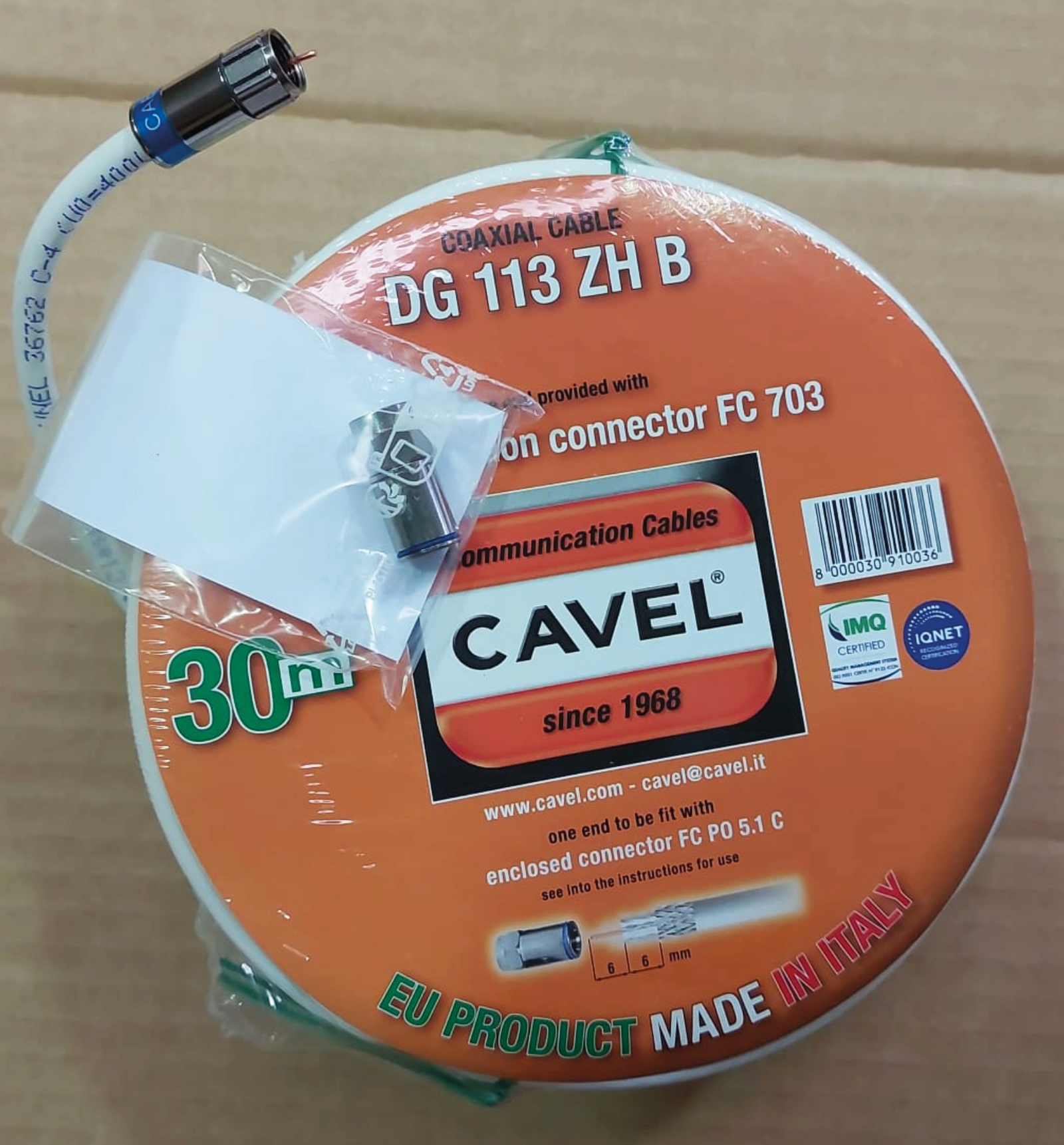 - Cabelcon modello FC703 SL, per contesti outdoor, già intestato ad un lato del cavo coassiale;