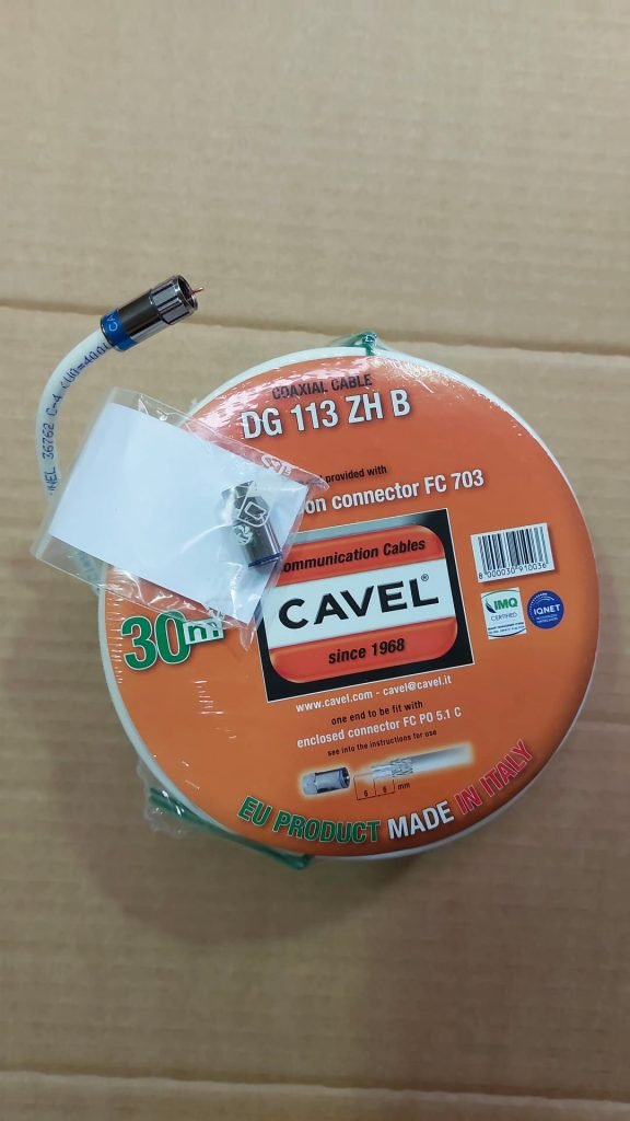 Il cavo coassiale Cavel utilizzato per realizzare le matasse dedicate alle soluzioni VSAT è il modello DG113ZH di colore bianco, progettato espressamente per questo tipo di applicazioni.