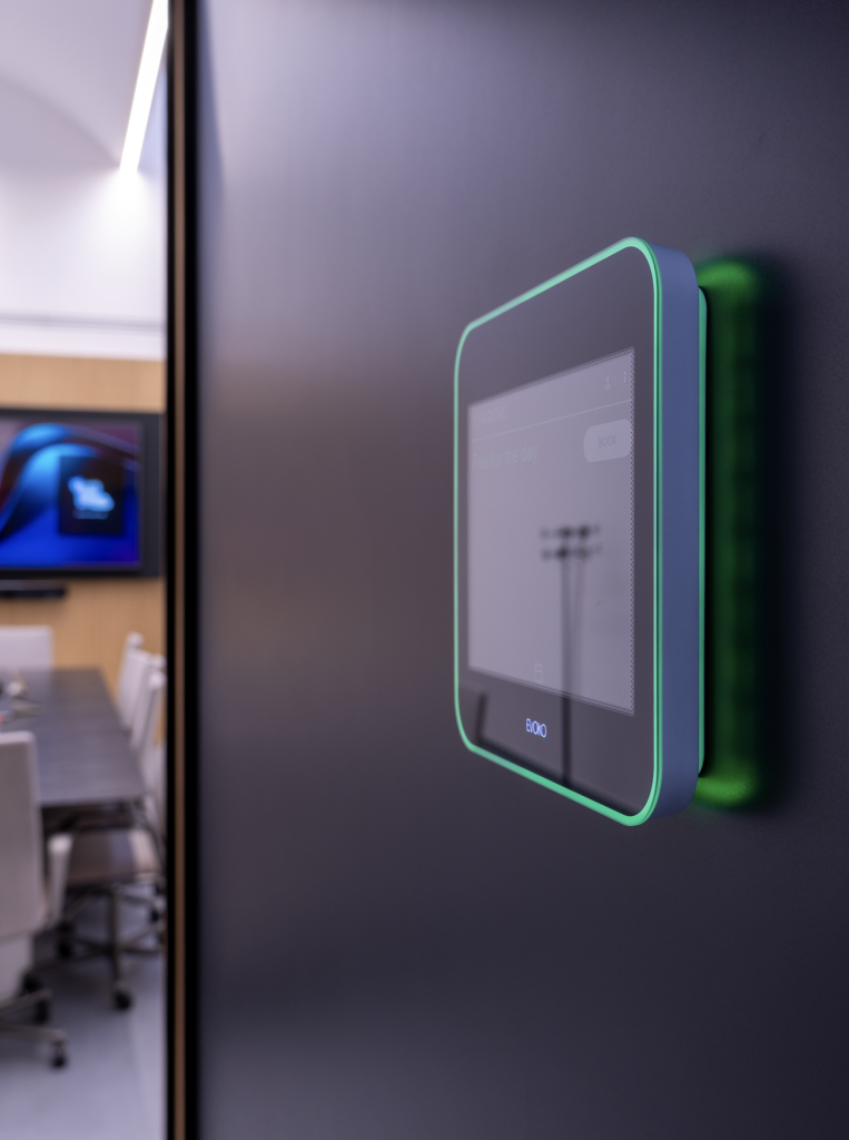 A Stefano Mazzacani chiediamo di descriverci più nel dettaglio anche questa soluzione di prenotazione. «La richiesta di un sistema di booking ci è arrivata dal committente, con alcune esigenze specifiche: che fosse integrata con il calendar di Microsoft – suite che il cliente usa in vari ambiti –, bella dal punto di vista estetico e alimentata in modalità Power over Ethernet. Avendo pareti a vetrate, infatti, era fondamentale avere un unico cavo per l’alimentazione e la connessione di rete dei device. Quella basata sui dispositivi Evoko Liso è stata la soluzione più semplice che abbiamo pensato di proporre. Le informazioni vengono importate nel calendar di Microsoft, in modo che gli interessati possano sapere se una sala è libera o occupata e qual è la prossima riunione in programma. Il cliente l’ha gradita fin dall’inizio.»