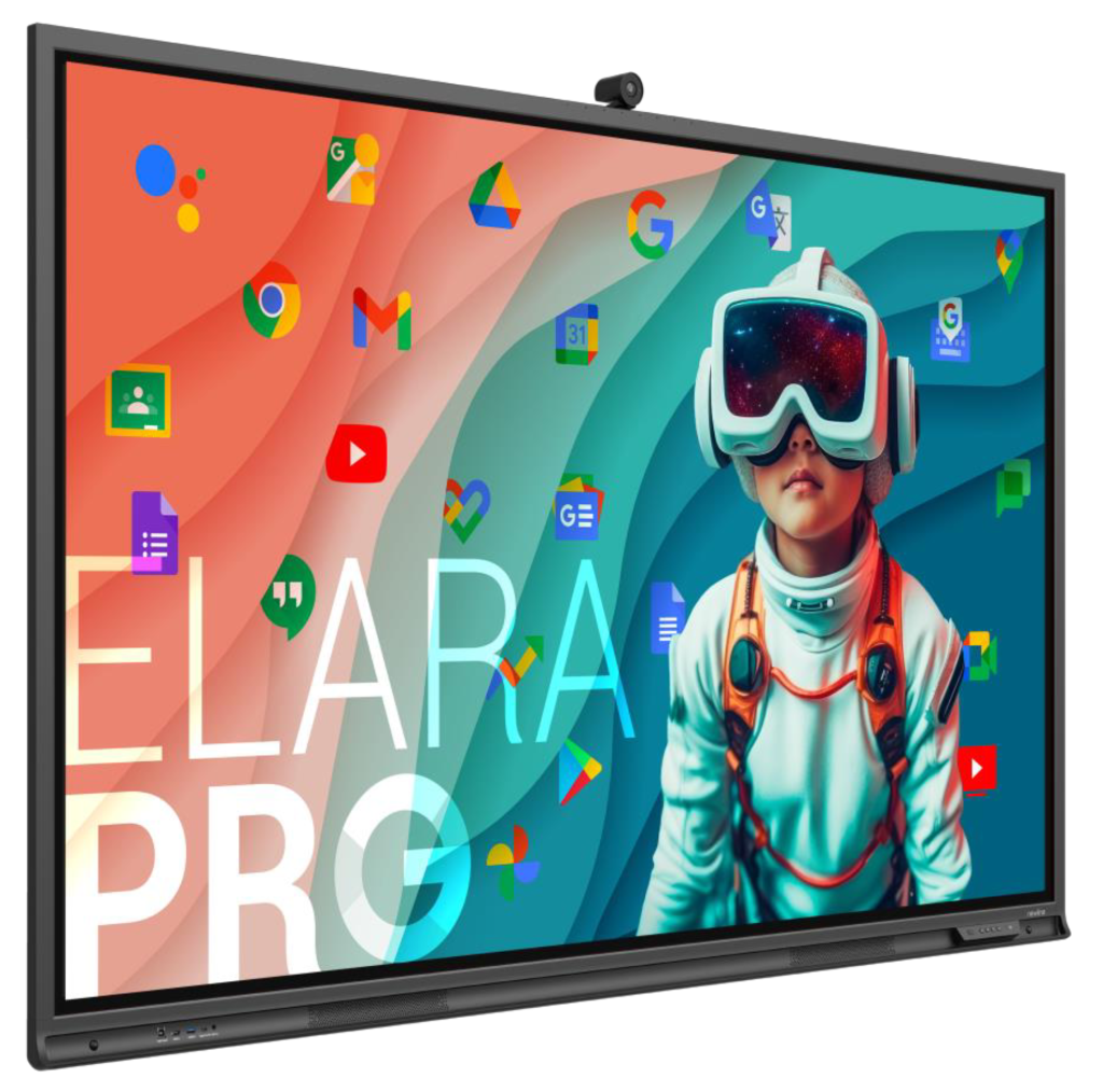 Il monitor Newline Elara Pro, con videocamera, microfoni e subwoofer integrati, grazie allo schermo Zero Bonding, certificazione Google EDLA, Android 13, RAM da 16 GB e storage da 320 GB offre un’esperienza utente ai vertici del mercato.