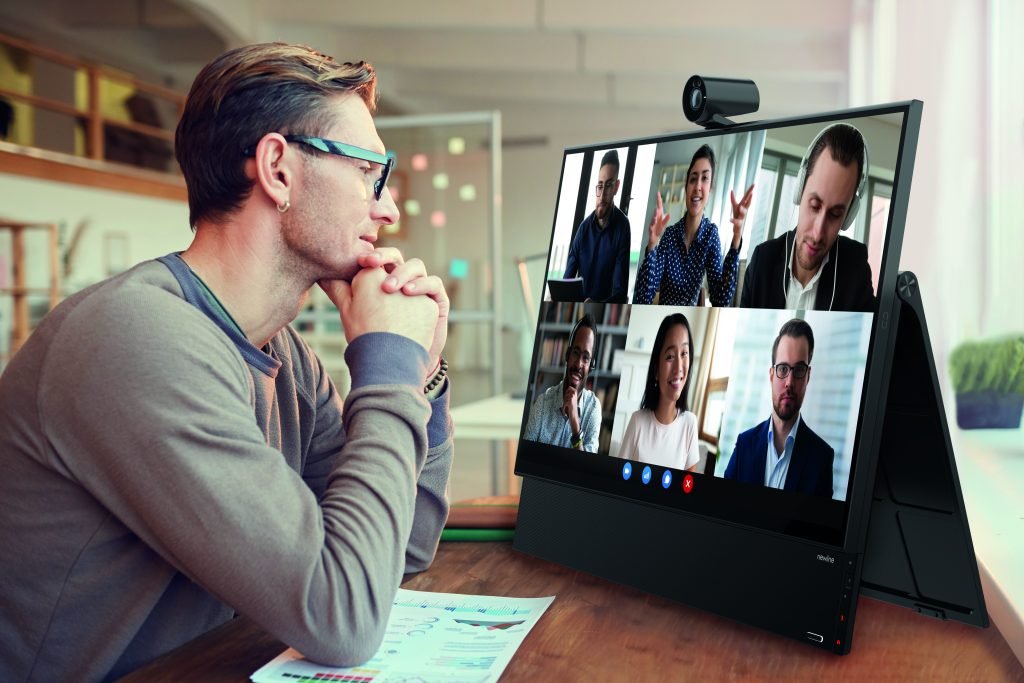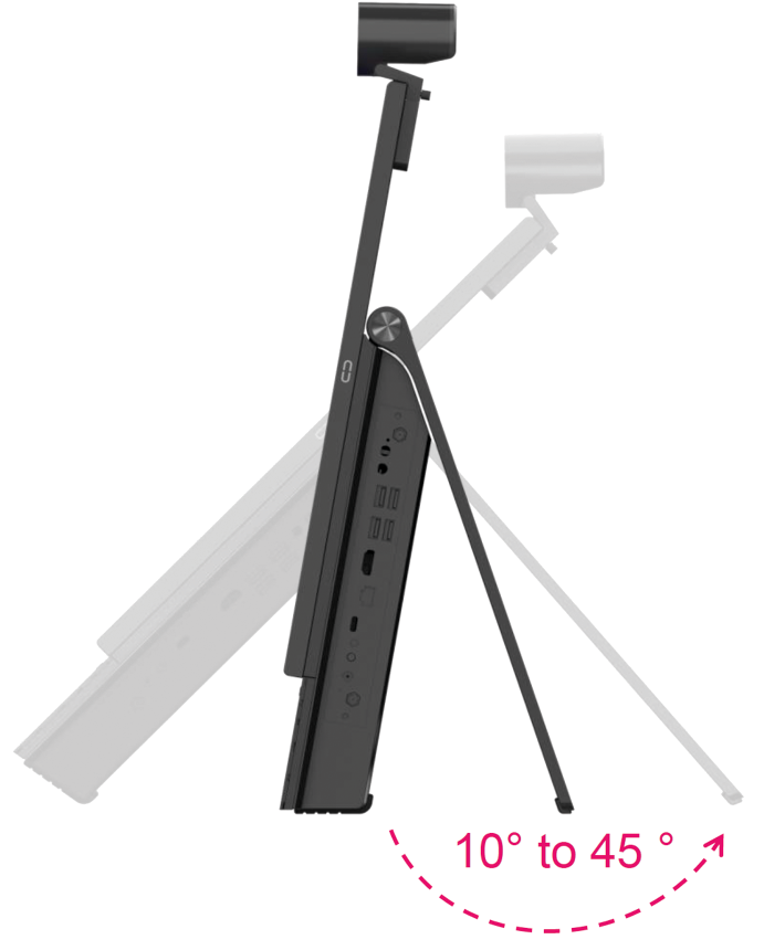 • come monitor all-in-one da posizionare in un corner, in una huddle room o su una scrivania di generose dimensioni per effettuare una videoconferenza, condividere contenuti in presenza o da remoto;