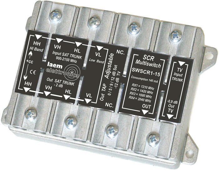 La nuova serie di Multiswitch SCR presentata da Laem consente all’installatore di espandere le soluzioni d’impianto da offrire ai propri clienti. Ricordiamo che tutti i prodotti Laem, e quindi anche questi multiswitch sono progettati, sviluppati e prodotti interamente in Italia: offrono quindi un grado di affidabilità e una costanza di prestazioni tipica dei prodotti Made in Italy. I nuovi modelli, disponibili a 4 e 5 cavi, sono adatti alla distribuzione di una posizione orbitale, con la possibilità di integrare il segnale terrestre. Il contenitore è in pressofusione e garantisce un’adeguata schermatura anche ad eventuali segnali interferenti, generati dalle stazioni radio base della telefonia mobile che operano a 1800 MHz. La presenza degli attacchi a morsetto, al posto dei tradizionali connettori F maschio, permette un notevole contenimento degli ingombri nelle scatole di derivazione dove lo spazio a disposizione spesso è veramente poco. Anche questo aspetto sarà apprezzato dagli installatori.
