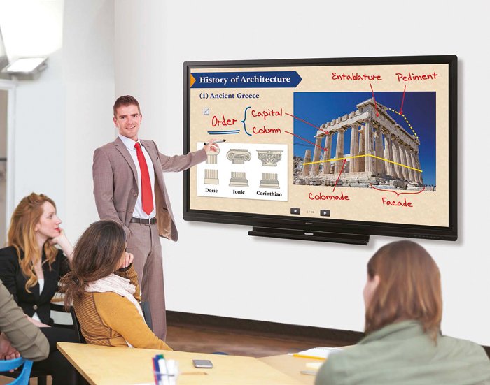 Il grande vantaggio che questa serie offre riguarda la completa dotazione di strumenti software che Sharp ha sviluppato e messo a punto nel tempo. Sono così presenti il Pen Software 3.5 (scrivere, disegnare e prendere nota in modo intuitivo), il Display Connect (connettività BYOD, fino a 50 dispositivi mobile) e Touch Viewing (organizzare i contenuti in modalità collaborazione).
