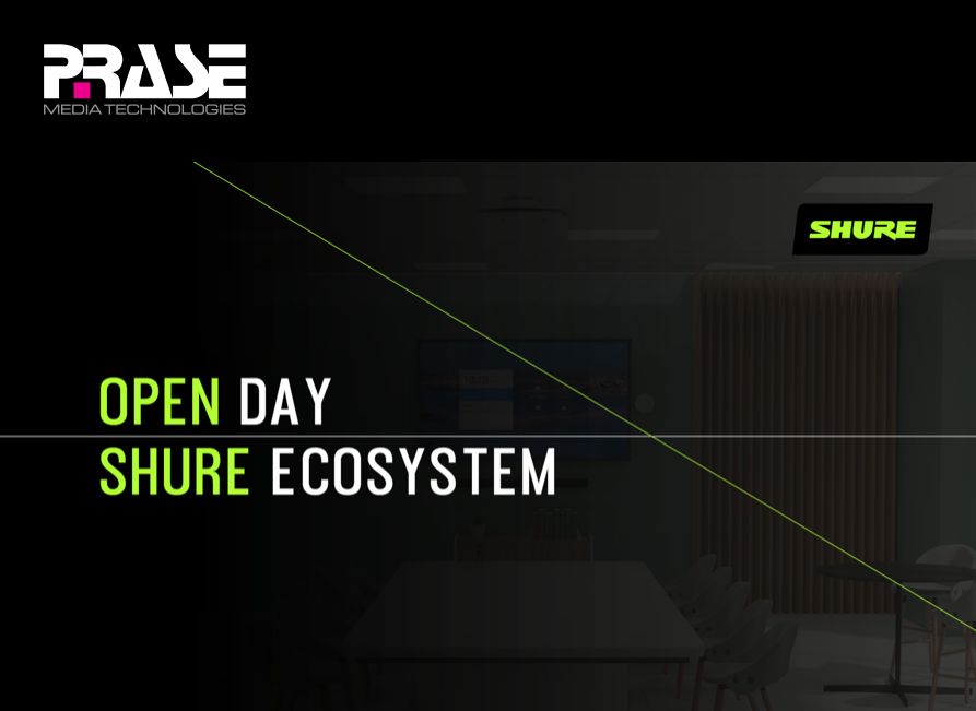 “Vieni a provare ed ascoltare il nuovo MXA902, il primo microfono da soffitto con altoparlante integrato. Potrai assistere inoltre alle dimostrazioni dei sistemi Shure MXA, il sistema su rete Stem e confrontarti con i Product Specialist Shure e Prase”.